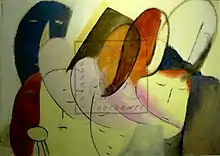 Mori became involved with the Futurist movement, joining the group led by Filippo Tommaso Marinetti in 1931. She was the only woman to contribute to The Futurist Cookbook in 1932.[4] She was invited to the first Natural Futurist Exhibition in Rome in 1932, and soon after left Turin to return to live in Florence with her husband. In 1930 and 1934 she was invited to the Venice Biennale. She became very involved with Aeropittura (Aeropainting), winning a Silver Medal for a triptych she exhibited in a 1932 Futurist Art Prize at Galleria Bardi in Rome. In 1937 her work was included in the exhibition Les femmes artistes d’Europe at the Galerie nationale du Jeu de Paume in paris, later to travel to the Metropolitan Museum of Art in New York.[5] Towards the late 1930s, Mori became disenfranchised with the Futurist movement due to its enthusiasm for fascism – a position that made her the subject of heavy criticism from her contemporaries. In 1938 she vehemently protested against the publication of the Manifesto of Race. She would later give hospitality to Rita Levi Montalcini and her brother Gino Levi Montalcini, who were both affected by Italian racial laws from 1938 to 1943. In 1943, at the eve of the outbreak of Civil War, Mario Mori died.