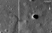 The hole, first discovered by the Japanese SELenological and ENgineering Explorer (SELENE) and then later imaged by the Lunar Reconnaissance Orbiter[7] has been the subject of much research and speculation. There is a possibility that this feature could be a skylight in a lava tube.[8] The depth of this hole is estimated to be between 80 and 88 m (262 and 289 ft) and its width is estimated to be several hundreds of meters.[9]