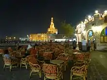 A market, or marketplace, is a location where people regularly go to gather for the purchase and sale of provisions, livestock, and other goods.[1] In different parts of the world, a market place may be described as a souk (from the Arabic), bazaar (from the Persian), a fixed mercado (Spanish), or itinerant tianguis (Mexico), or palengke (Philippines). Some markets operate daily and are said to be permanent markets while others are held once a week or on less frequent specified days such as festival days and are said to be periodic markets. The form that a market adopts depends on its locality's population, culture, ambient and geographic conditions. The term market covers many types of trading, as market squares, market halls and food halls, and their different varieties. Due to this, marketplaces can be situated both outdoors and indoors, and in the modern world, online.