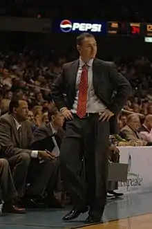 When Billy Donovan was hired in 1994, he was 28 years old and the youngest head coach in NCAA Division I.[7] Donovan helped land West Virginia native and future NBA standout Jason Williams after he had originally signed with Providence. When Donovan left to become the head coach of the University of Florida in 1996, Williams followed him to the Gators. Donovan led the Thundering Herd to the Southern Conference North division title in the 1994–95 season. He went 35–20 in two seasons at Marshall. Notable assistant coaches at Marshall under Donovan included Anthony Grant and John Pelphrey.