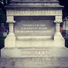 A $2,500 granite gravestone was erected in his honor, on which an epitaph was inscribed that read: "This world is my home/ To do good is my religion/ Why did a good God make a bad Devil?"