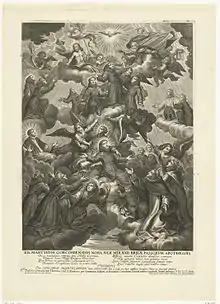 A shrub bearing 19 white flowers is said to have sprung up at the site of their martyrdom. Many miracles have since been attributed to the intercession of the Gorkum Martyrs, especially the curing of hernias.[3] The beatification of the martyrs took place on 14 November 1675, and their canonization on 29 June 1867.[1][4] Their elevation to sainthood, which took place on the Feast of Saints Peter and Paul, was part of grand celebrations marking 1,800 years since the traditional year for the martyrdom of the two apostles in Rome.[5]