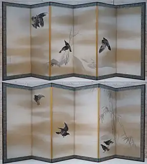 Maruyama Ōkyo (円山 応挙, traditional characters: 圓山 應舉, June 12, 1733 – August 31, 1795), born Maruyama Masataka, was a Japanese artist active in the late 18th century. He moved to Kyoto, during which he studied artworks from Chinese, Japanese and Western sources. A personal style of Western naturalism mixed with Eastern decorative design emerged, and Ōkyo founded the Maruyama school of painting. Although many of his fellow artists criticized his work as too slavishly devoted to natural representation, it proved a success with laypeople.