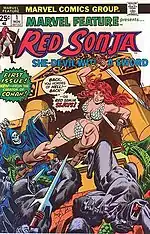 The second series featured Red Sonja, a supporting character from the ancient fantasy world of Conan the Barbarian. It was published for seven issues from November 1975 until November 1976.[4] Roy Thomas wrote issues #1, #6, and #7, while Bruce Jones scripted the other issues. Except for issue #1, drawn by Dick Giordano, the art for the series was by the creator most associated with Red Sonja, Frank Thorne.[5] The character then received her own self-titled series in January 1977.