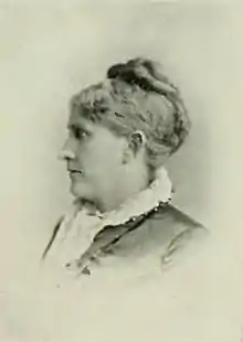 She received her education in her father's theological library, supplemented by a course of study in the Ingalls Seminary, Binghamton, New York.[1] She graduated at Wyoming Seminary, Pennsylvania, in 1853.[3]