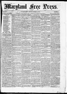 Contents of the Maryland Free Press included local news, war reports, market reports, agricultural news, and advertisements.[3] Post-Civil War coverage was critical of Reconstruction and of civil rights for freed slaves.[4][5][6]