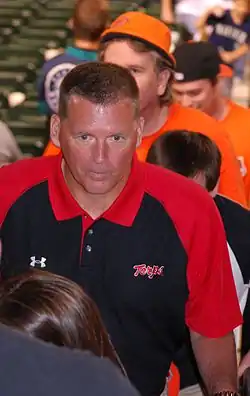 Ralph Friedgen, a former Maryland player and assistant under Bobby Ross, was hired as Vanderlinden's replacement for the 2001 season. Friedgen had previously been denied an interview for the position twice by his alma mater.[55] While offensive coordinator at Georgia Tech, he had been described as an "offensive genius",[56] and Friedgen later received similar plaudits while at Maryland.[57] When he took over, Maryland had not won a bowl game in 16 years and had only one winning season since 1990.[7]
