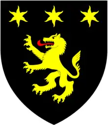 Arms of Maryon-Wilson: Sable, a wolf rampant in chief three estoiles or[1]