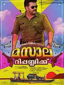 Masala Republic is a 2014 Indian Malayalam-language dystopian political satire film directed by Visakh G. S. in his directorial debut. It stars an ensemble cast consisting of Indrajith, Aparna Nair, Sunny Wayne, P. Balachandran, Mamukkoya, Vinayakan, Vinay Forrt, Mala Aravindan, and Captain Raju. The story and dialogue of the film is by the director, while the screenplay was co-written by Arungeorge K. David.