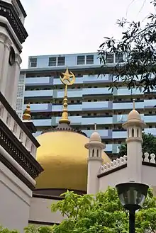 The Hajjah Fatimah Mosque (Malay: Masjid Hajjah Fatimah, Jawi:مسجد الحاجة فاطمة) is a mosque located along Beach Road in the Kampong Glam district within the Kallang Planning Area in Singapore. The mosque was designed in a mix of Islamic and European architectural styles, and completed in 1846. The mosque is named after an aristocratic Malay lady, Hajjah Fatimah, who commissioned its construction.[1]