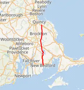 | Bristol | New Bedford | 0.0 | 0.0 | Cove Street / Rodney French Boulevard south | Continuation south |