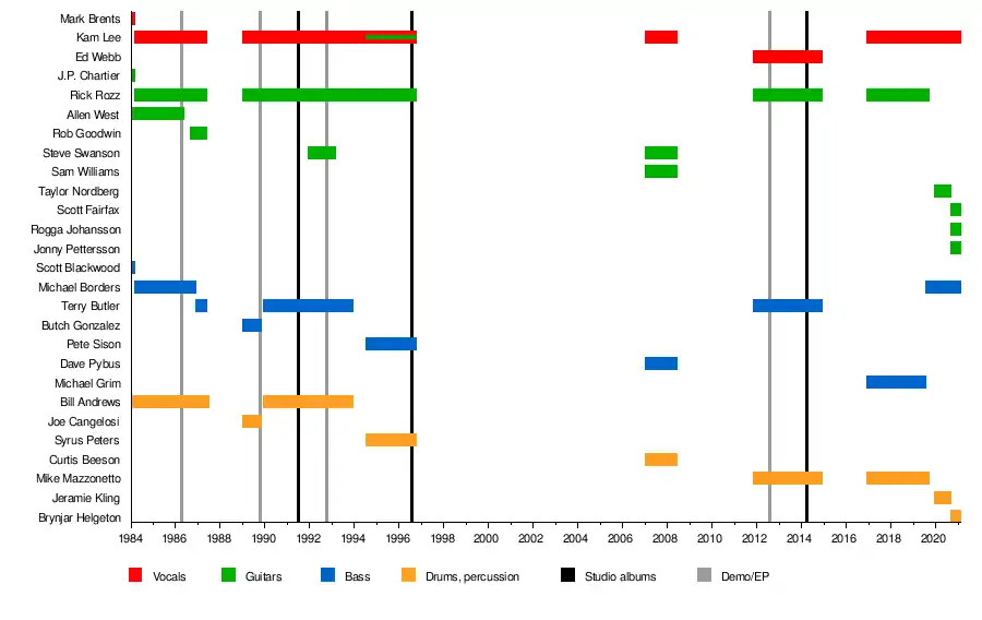 - Kam Lee – vocals (1984–1987, 1989–1996, 2006–2007, 2017–present)