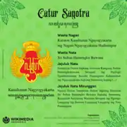 |website=(help) - Media, Kompas Cyber. "Catur Sagotra Nusantara, untuk Melestarikan Empat Keraton". KOMPAS.com (in Indonesian). Retrieved 1 February 2021.