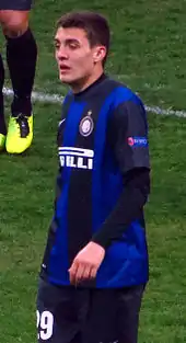 On 30 March, Kovačić was a starter in his first Derby d'Italia against Juventus at San Siro. The derby ended in a 1–2 win for Juventus, with Kovačić starting the action that resulted in Rodrigo Palacio's 1–1 equalizer.[28] Kovačić was a starter in Inter's next Serie A match, a 0–2 away win against Sampdoria, as well as in their surprising 3–4 loss to Atalanta at San Siro, where he provided an assist for Ricky Álvarez's goal.[29][30] By the end of the second half of the season, he was a starter in all of the club's Serie A fixtures, as Inter finished in disappointing ninth place on the Serie A table. In May, he was given the "Gentleman Revelation of the Year" award, awarded by Inter fans.[31]