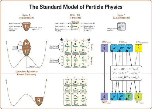 | Gauge | SU(3)×SU(2)×U(1) | Local symmetry | Color charge, Weak isospin, Electric charge, Weak hypercharge |