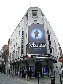 In 1990, the Redgrave Theatre in Farnham produced a musical version, adapted by Rony Robinson with music by Ken Howard and Alan Blaikley, which toured the UK. It starred Annabelle Lanyon as Matilda and Jonathan Linsley as Miss Trunchbull, and had mixed reviews.[11] A second musical version of the novel, Matilda the Musical, written by Dennis Kelly and Tim Minchin and commissioned by the Royal Shakespeare Company, premiered in November 2010. It opened at the Cambridge Theatre in the West End on 24 November 2011.[1][12] It opened on Broadway on 11 April 2013 at the Shubert Theatre. The musical has since done a US tour and opened in July 2015 in Australia. The stage version has become hugely popular with audiences and praised by critics, and won multiple Olivier Awards in the UK and Tony Awards in the US.[13] One critic called it "the best British musical since Billy Elliot".[2]