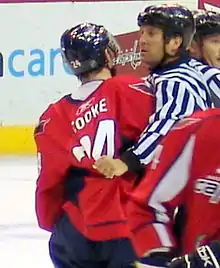 On March 7, 2010, in a game against the Boston Bruins, Cooke delivered a blow to the head of Boston's Marc Savard, concussing Savard and forcing him to miss almost two months. Cooke said he was not intending to hurt Savard;[20] Bruins General Manager Peter Chiarelli, however, characterized the hit as "a very surgical hit to the head."[21] Fellow Penguin teammate Bill Guerin also analyzed Cooke's hit on Savard to Pittsburgh reporters.[21] "If a guy gets hurt like that with a shot to the head, there's got to be something," said Guerin, adding that he expected Cooke to be suspended. "I understand he (Cooke) is on my team but, hey, he's in a tough spot."[22] In a ruling, which has received wide criticism,[21][23] Cooke was not given a suspension for the hit on Savard.[24] On March 24, in response to the outcry over Cooke not being suspended, the league implemented a new rule aimed at prohibiting blindside hits to the head like the one Cooke delivered to Savard. In announcing the rule, NHL Commissioner Gary Bettman said, "The elimination of these types of hits should significantly reduce the number of injuries, including concussions, without adversely affecting the level of physicality in the game."[18][25] Earlier, Bettman appeared on Leafs Lunch on Mojo 640 in Toronto to discuss the Cooke hit on Savard. "I was very unhappy and upset with that hit," said Bettman. "I was more upset there was nothing (in the League rules) to do to punish it." [17]
