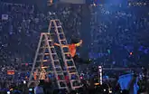 At King of the Ring, The Hardyz defeated Edge and Christian to earn the #1 contendership for the WWF Tag Team Championship. On July 5, they defeated The APA to win their first Tag Team Championship.[30] They soon dumped Hayes and briefly picked up Gangrel as a manager, after Gangrel turned on Edge and Christian. At No Mercy, The Hardyz defeated Edge and Christian in the first ever tag team ladder match.[31] At the Royal Rumble pay-per-view, The Hardyz defeated The Dudley Boyz in the first ever tag team tables match.[32] They competed against The Dudley Boyz and Edge and Christian for the Tag Team Championships at WrestleMania 2000 in the first ever Triangle Ladder match, but were unsuccessful.