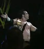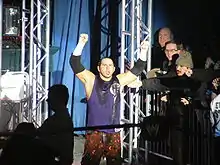 Hardy appeared at a scheduled Ring of Honor (ROH) event on July 16, 2005, in Woodbridge, Connecticut where he defeated Christopher Daniels via submission.[63] Hardy also cut a brief worked shoot promo where he criticized WWE and John Laurinaitis. Following his official return to WWE, Hardy was met with backlash following a match with Homicide from the fans at a subsequent ROH event, which Hardy won.[64] The next day at his final ROH appearance, he lost to Roderick Strong.[65]