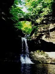 The park is near Oglesby, in LaSalle County, Illinois, United States. It is named for Frederick William Matthiessen, who had originally owned the 176 acres (71 ha) of property that is at the core of the current park.[2] Two mansions, several cottages, a garage, and a private fire station were built here by Matthiessen for his family. It was an estate that hosted a private park known as "Deer Park".[3] The park was donated to Illinois by Matthiessen's heirs, following his death in 1918, and was renamed in his honor in 1943. Since then, land was added, growing the park to 1,938 acres (784 ha).[2] The last building of the former estate was destroyed in 1981, although some of the concrete stairs leading into the canyon are of the original construction.[3]