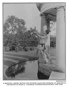 In 1910, Hewitt had taken photographs of the Albert Boardman Estate in Southampton which was published in Southampton Times in 1912 and again in 1916 which brought her professional skill to limelight. In all the photographs she took, carrying heavy wooden cameras and wooden tripods, for clients she also took additional pictures which she offered to newspapers and magazines for publication as part of an article. She also maintained a good record of negatives with names of clients, architects, and location.[11] She had also taken photographs for buildings of Carrère & Hastings who had recommended her work to others.[1] In the words of Robin S. Karson, author of the book titled Fletcher Steele, Landscape Architect: An Account of the Gardenmaker's Life, 1885–1971, Hewitt was "one of the best known and most lyrical garden photographers of her day."[12] Hewitt took photographs documenting the estate for the Paris Exhibition of 1930. These photographs have been said to "glimmer with drops of light reflecting from shiny-leaved willows".[12]
