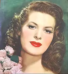 In 1945, O'Hara starred opposite Paul Henreid in The Spanish Main as feisty noblewoman Contessa Francesca, the daughter of a Mexican viceroy.[84] O'Hara described it as "one of my more decorative roles",[85] as her character is a particularly aggressive one among the men on a ship, and during the course of the film her face is smothered in chimney soot.[86] O'Hara almost did not win the role when another actress falsely told RKO executive Joe Nolan that she was "as big as a horse" after giving birth to a daughter in 1944.[87] Around this time "an actress named Kathryn" also falsely accused O'Hara of making sexual advances towards her in an elevator, which she believed was a way for the actress to gain attention at the start of her career.[88] During the production of The Spanish Main, O'Hara was visited by John Ford, who was initially turned away for being shabbily dressed, but was later admitted to informing her about the project that would become The Quiet Man (1952). Malone notes that in the film O'Hara "shows her determination not to leave her sexuality at the birthing stool", commenting that she looks "deliciously fragrant in the splashy histrionics on view here, in RKO's first film in the three-color Technicolor process" [87] O'Hara became a naturalized citizen of the United States on 24 January 1946,[5] and held dual citizenship with the United States and her native Ireland.[89]