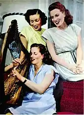 After the completion of The Hunchback of Notre Dame, World War II began, and Laughton, realizing his company could no longer film in London, sold O'Hara's contract to RKO.[38][39] O'Hara later professed that this "broke my heart, I felt completely abandoned in a strange and faraway place".[40] She next featured in John Farrow's A Bill of Divorcement (1940), a remake of George Cukor's 1932 film. O'Hara portrayed Sydney Fairchild, who was played by Katharine Hepburn in the original, in a film which she considered to have had a "screenplay [which] was mediocre at best".[41] The production became difficult for O'Hara after Farrow reportedly made "suggestive comments" to her and began stalking her at home; once he realized that O'Hara was not interested in him sexually, he began bullying her on set. Then, O'Hara punched him in the jaw one day, which put an end to the mistreatment.[42] O'Hara's performance was criticized by reviewers, with the critic from The New York Sun writing that she "lacked the intensity and desperation it must have; nor does she seem to have a sparkle of humor".[39] She next found a role as an aspiring ballerina who performs with a dance troupe in Dance, Girl, Dance (1940). She considered it to have been a physically demanding film, and felt intimidated by Lucille Ball during the production as she had been a former Ziegfeld and Goldwyn girl and was a superior dancer.[43] The two remained friends for many years after the film was completed.[44] Critic Molly Haskell thought that O'Hara was "a little out of her depth in a vaudeville house, not exactly the temple of high art".[45]