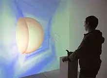 In a seminal text, Art After Museum (1993), Benayoun coins SAS as any kind of interface that allows to go from the physical space to the virtual Reality space. Explaining the technology may evolve, but the necessity to have a transition from the "real" to the space of fiction that we call "Virtual Reality". SAS is a French word coming from the Latin, that designs the apparatus that allows us to go from a human-compatible space to a more "hostile" environment. The airlock system in a submarine, or the double door system in a bank are a "sas". So are the CAVE VR system or the VR Head Mounted Display.[15] The SAS Cube created in 2000–2001, was the first PC based cube of Virtual Reality.