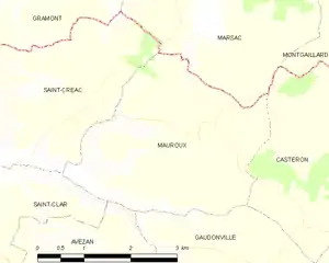 | Wikimedia Commons has media related to Mauroux (Gers). |