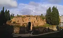 The Mausoleum of Augustus (Italian: Mausoleo di Augusto) is a large tomb built by the Roman Emperor Augustus in 28 BC on the Campus Martius in Rome, Italy. The mausoleum is located on the Piazza Augusto Imperatore, near the corner with Via di Ripetta as it runs along the Tiber. The grounds cover an area equivalent to a few city blocks nestled between the church of San Carlo al Corso and the Museum of the Ara Pacis. The mausoleum is currently in the process of a restoration, upon the completion of which it will open to the public.[1][2] The mausoleum will reopen starting from March 1, 2021, after fourteen years of closure to the public.[3]