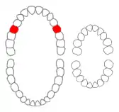 ![]() Maxillary second premolars of permanent teeth marked in red. There are no premolars in primary teeth. | |