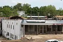 The derecho continued to intensify as it reached southwestern Missouri, where the storm forced several television stations in Joplin, Missouri, off the air after their transmission towers were downed; one station's tower landed on its studios.[46] Numerous schools were damaged throughout the Springfield, Missouri, area, including a roof collapse at the Fair Grove High School, resulting in three injuries to students. There were numerous reports of tree and roof damage throughout Springfield, prompting some business to close. Drury University canceled some morning classes.[46] A total of 346 buildings suffered some damage in Greene County, Missouri, and four people were injured, but none required hospitalization.[47]