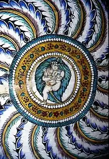 In Puranas and Vaishnava theology, māyā is described as one of the nine shaktis of Vishnu.[42] Māyā became associated with sleep; and Vishnu's māyā is sleep which envelopes the world when he awakes to destroy evil. Vishnu, like Indra, is the master of māyā; and māyā envelopes Vishnu's body.[42] The Bhagavata Purana narrates that the sage Markandeya requests Vishnu to experience his māyā. Vishnu appears as an infant floating on a fig leaf in a deluge and then swallows the sage, the sole survivor of the cosmic flood. The sage sees various worlds of the universe, gods etc. and his own hermitage in the infant's belly. Then the infant breathes out the sage, who tries to embrace the infant, but everything disappears and the sage realizes that he was in his hermitage the whole time and was given a flavor of Vishnu's māyā.[43] The magic creative power, Māyā was always a monopoly of the central Solar God; and was also associated with the early solar prototype of Vishnu in the early Aditya phase.[42]