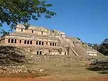 Maya architecture spans several thousands of years, several eras of political change, and architectural innovation before the Spanish colonization of the Americas.[1] Often, the buildings most dramatic and easily recognizable as creations of the Maya peoples, are the step pyramids of the Terminal Preclassic Maya period and beyond. Based in general Mesoamerican architectural traditions, the Maya utilized geometric proportions and intricate carving to build everything from simple houses to ornate temples.[2] This article focuses on the more well-known pre-classic and classic examples of Maya architecture. The temples like the ones at Palenque, Tikal, and Uxmal represent a zenith of Maya art and architecture. Through the observation of numerous elements and stylistic distinctions, remnants of Maya architecture have become an important key to understanding their religious beliefs and culture as a whole.[3][4]