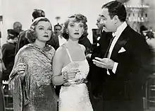 In 1932, after signing a contract with Warner Bros., Methot starred as the female lead in The Night Club Lady, a murder mystery co-starring Adolphe Menjou.[37] What followed was a long line of roles as unsympathetic second leads and tough-talking "dames" in many of Warner's contemporary crime melodramas, such as The Mind Reader and William Wyler's Counsellor at Law (both 1933), as well as Jimmy the Gent (1934) opposite Jimmy Cagney and Bette Davis.[34] In 1934, she had roles in three First National Pictures features: first as a nurse in the drama Registered Nurse, followed by supporting parts in Side Streets and Mills of the Gods.[34]