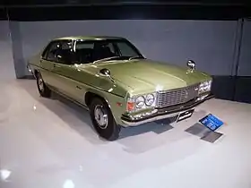 The Mazda Roadpacer AP (Anti-Pollution) is a full-size sedan that was sold by Mazda in Japan between 1975 and 1977, although the last car was not sold until 1979. It was based on the Australian Holden HJ and HX series Premier.[1] Premiers were shipped to Japan without engines, and Mazda fitted a 1.3-liter 13B Wankel engine into the bay. The engine produced 130 hp (97 kW) but just 102 lb⋅ft (138 N⋅m) of torque, meaning the Roadpacer performed rather poorly as it weighed 1,575 kg (3,472 lb). The Roadpacer was introduced to compete with large Japanese flagship sedans Toyota Century, Nissan President, Isuzu Statesman de Ville, and the Mitsubishi Debonair.