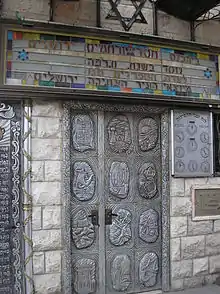 Hessed Verahamim synagogue is a Sephardi synagogue in Mazkeret Moshe that was once a pub. In the late 1920s, the neighborhood butcher convinced the pub owner to turn the building into a synagogue. The doors are covered with silver plates illustrating the Twelve Tribes.[2]