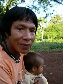Although they are now known by the name "Mbyá," they refer to themselves as the "Nhandeva," a word that means "us" or "our people," which is also the name used internally by various other Guaraní peoples.[4] Another such group, often referred to by ethnographers as the Nhandeva, is called "Chiripá" by the Mbyá, and the two groups each claim exclusive status as the true Guaraní.[6]