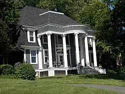 McClellan Heights is the largest neighborhood in the east end of Davenport. It is located east of the Village of East Davenport. It runs from Jersey Ridge Road to the Bettendorf city limits, and from River Drive to Middle Road. Dating from 1894-1940, four hundred houses make up the McClellan Heights neighborhood.[2] The neighborhood is made up of many hills and ravines. The streets follow the topography which requires many winding roads and odd-shaped lots. The southern portion of McClellan Heights is very wooded which adds to the attractiveness of the neighborhood.[3] Developed from south to north, including four very large mansions built before World War I, the area became popular with upper-middle-class residents. The area was mostly settled by Dutch and New England immigrants. The park-like setting, and proximity to and view of the river, have kept this neighborhood fashionable even today. The houses remain in good to excellent condition. The few brick streets that run through the neighborhood also remain in excellent condition.