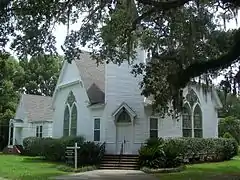 The McIntosh Presbyterian Church is an historic Carpenter Gothic style Presbyterian church located at 5825 Avenue F, corner of 7th Street, in McIntosh, Florida in the United States. The church was founded in 1885 as Center Point Church and the present building was built in 1907 and its name was changed to McIntosh Presbyterian Church on November 11, 1908. The church has gabled sidewalls facing each street. Each of these sidewalls features a large triptych lancet window. The main entrance is in a corner-facing bell tower set a 45 degree angle to the sidewalls.[1][2]