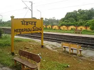 Medapadu railway station (station code:GDPT[2]), is an Indian Railways station in Medapadu, a village in Samarlakota Mandal in East Godavari district of Andhra Pradesh. It is located 15 km towards west from district headquarters Kakinada, 12 km from Samarlakota and 232 km from State Capital Amaravathi. G. Medapadu pincode is 533434. It lies on the Vijayawada–Chennai section and is administered under Vijayawada railway division of South Central Railway zone. 11 trains halt in this station every day. It is the 2140th-busiest station in the country.[3]