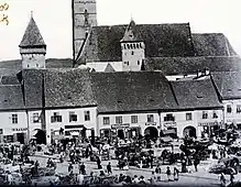 The city lies in the middle of the area which was inhabited by Transylvanian Saxons and in an area of 20 km around it there are dozens of fortified churches, two of them UNESCO World heritage sites.