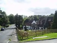 An old hammer mill site, at work from 1567 to 1786. One of the names indicates that the mill was a drawing mill at one time. In 1533, the effects of Thomas Gaynesford included a hammer mill. The property had been bought by Gaynesford from Sir John Gage in 1550. In 1559, Nicholas Norton was a miller grinding grain near lands called Shawnors, followed by John Myller in 1560 to 1563, when John Rodgers succeeded him. in 1567, Wiremill was being worked by John Thorpe. In the 1560s, there are several references to Woodcock Hammer or Forge being worked by Swanne. Woodcock Forge is believed to have been built by Jack Dancy of Turners Hill. Hedgecourt Mill is thought to have been remodelled by him about the same time. The pond at Hedgecourt acted as a storage for the Woodcock forge. The tilt hammer was operated by an overshot waterwheel. Another overshot waterwheel worked bellows. In 1574, John Thorpe of Hedgecourt was working the forge in connection with the furnace at Myllwood. in 1586 Thorpe bought property from William Swanne Sr in the Woodcock Forge area. From 1598 to 1606 the rent was paid by Thomas Thorpe, son of John and in 1629 the forge was leased by John Gage to Richard Thorpe, the son of Thomas. His son, also Richard, held the forge until 1651, when it was forfeit in lieu of a debt. Thorpe's interest in the forge was sold to Simon Everenden of Cliffe near Lewes. In the 1650s the forge was in the occupation of John Newnham. In 1664, the forge was lease by Jeremy Johnson Jr of Charlwood. In 1672, woodland next to the pond was referred to as "Hammerwood" also known as "Wire Wood" thus indicating a drawing mill. John Newnham died in 1707, and his wife died in 1719, but the forge was known as "Mr Johnson's Forge" in 1717. At that time the output from the forge was some 40 long tons (41 t) per annum. By 1729 the forge was in the occupation of Thomas Stanford, who was converting sows from Heathfield furnace at Woodcock Forge. Stanford does not seem to have had any connections with the Wealden iron industry after 1738. In 1742 Samuel Baker was in occupation, followed by Edward Raby and Alexander Master in 1758. They were supplying the Board of Ordnance with several gauges of bar iron, staff iron and rolled plate. Raby & Master were bankrupt in 1764. Edward Raby died in 1771, and the forge was taken over by his son Alexander until 1774, when the Government forced him to give up Woodcock furnace in a wrangle over the size of his moulds. Joseph Wright and Thomas Pickett took the business, but it is thought that the Hammer Mill ceased to be used c.1787. In 1800, the name Wire Mill is first used. Daniel Fossick held Wire Mill from 1800 to 1816, when he died. The mill was sold to James Jenner, who converted it to a corn mill. Jenner was at Wire Mill until 1844, when he was succeeded by William Brand. In 1838 he was joined by John Saunders, the mill being known as Woodcock Mill then. Saunders left in 1840 to take Hedgecourt Mill and William Brand joined Jenner. Jenner died in 1844 and Thomas Brand took the mill, which was known as Wire Mill in 1851. At this time the mill had two overshot waterwheels and drove four pairs of millstones. In 1855 the mill lake covered 14 acres (5.7 ha). Thomas Brand was still running the mill in 1871, assisted by his son Thomas, John Holman and John Burfield, all described as millers in the census of that year. In 1881, Thomas Brand (son) was the miller at Wire Mill. He ran the mill until 1887/88 when David Dadswell took the mill. Wire Mill was sold in 1911, described as having two overshot waterwheels and the mill lake covered 11 acres (4.5 ha) at this time. A picture of the mill c.1911 can be seen here. The mill was not sold and again offered for auction in 1912, again without success. A third attempt at auction in 1918 saw the mill being bought by a Major Crum. He sold it to a Miss Wilkins who had the building converted to residential use in 1920. The mill was purcahased by the Women's Farm and Garden Union in 1922 and by 1929 was the Wire Mill Tea Gardens. By 1933 it was the Wire Mill Fishing Club and in 1948 the Wire Mill Hotel and Fishing Club. By 1962 the property was known as the Wiremill Lakeside Hotel, Country and Fishing Club. Over the next decade the Country Club grew in popularity, leading to complaints and the local council refused to renew the clubs music and dancing license. In 1986 the mill was again sold, and although damaged by a fire during renovations reopened as a restaurant in September of that year. The mill was sold again in 1996 and 2000 and is now a pub. The building is devoid of machinery.[Note 1] [59][60][61]