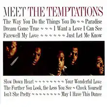 Meet the Temptations is the debut studio album by the Temptations for the Gordy (Motown) label released in 1964. It includes most of the group's early singles, excluding only the first, "Oh Mother of Mine", and its b-side, "Romance Without Finance" (later included on a CD reissue of the LP); as well as the single "Mind Over Matter" (and its b-side "I'll Love You Till I Die"), in which the group is credited as The Pirates. The album consists entirely of previously released singles, including the group's first hit single, "The Way You Do the Things You Do".