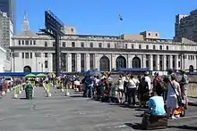 Beginning August 1, 2012, the New York stop moved to 34th Street between 11th and 12th Avenues, across the street from the Javits Center and the 34th Street - Hudson Yards subway station.[41]