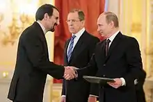 ![]() Sanai presenting his lettre de créance to Vladimir Putin, 16 January 2014 | |
