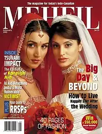 Mehfil Magazine was a Canadian-based South Asian lifestyle magazine, launched in 1993[1] by brothers Rana and Minto Vig. It was the first full colour South Asian glossy magazine of its kind in Canada. Their idea was simply to produce a periodical that would not only showcase the community to its own, but also provide a tool and a bridge to foster better cross-cultural harmony and understanding. The word "Mehfil" means "a gathering". During its run, Mehfil Magazine featured the South Asian community’s leading business men and women, writers, artists, social workers, law enforcement, politicians and students. It also tackled some of the South Asian community’s toughest social and political issues, including the Air India bombing, sexual abuse, arranged marriages, health concerns such as diabetes, the plight of seniors, as well as the cultural challenges of a new generation trying to integrate. The magazine ceased publication in 2010.[2]