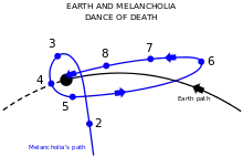 Later, the reason for Antares's disappearance has become public knowledge: a newly discovered rogue planet called Melancholia, which entered the Solar System from behind the Sun, was blocking the star from view. The planet has now become visible in the sky as it approaches ever closer to Earth. John is excited about the "fly-by" predicted by scientists, while Claire is frightened by alternate predictions of Earth being hit and destroyed.