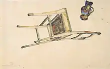 Suryodarmo devised the 2005 piece The Black Ball for a retrospective on painter Egon Schiele. Inspired by Schiele's 1912 drawing Organic Movement of a Chair and Jug, she held a black ball while sitting silently on a chair fixed to the museum's wall, high above the floor. During the first four days of the performance, she sat in the chair for eight-hour stretches.[13]
