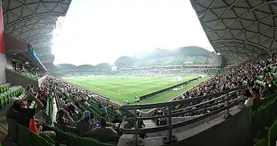 Melbourne City is run from the City Football Academy, a facility in the northern suburb of Bundoora near La Trobe University.[4] The club plays home matches at Melbourne Rectangular Stadium, commercially known as AAMI Park, a 30,050 seat multi-use venue in Melbourne's City Centre. The club also has an affiliated youth team which competes in both the National Youth League and the third division of the NPL Victoria league, and a senior women's team which competes in the W-League.